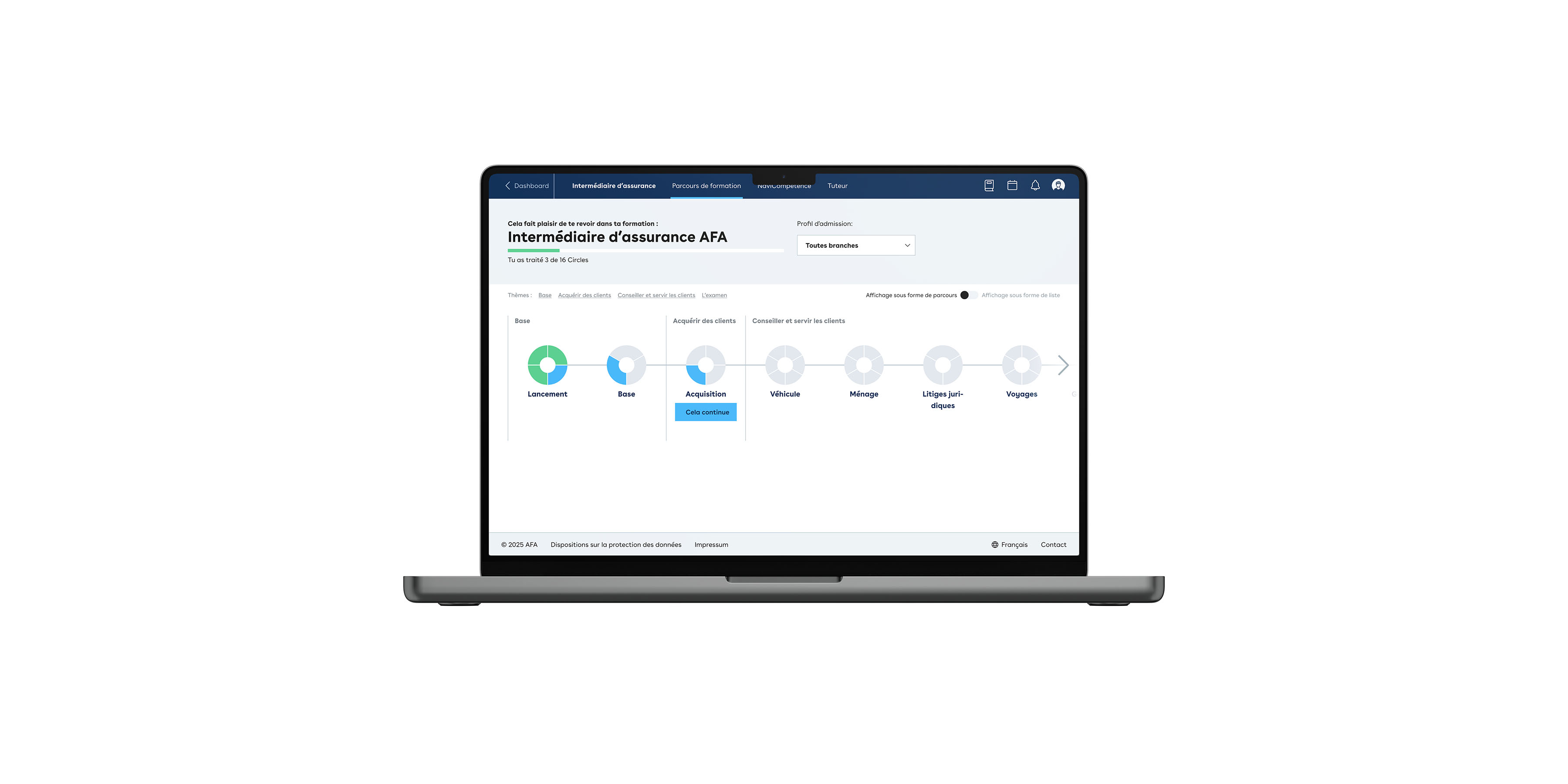 Tu es ici à la bonne adresse si tu souhaites passer les examens d’admission ou de recertification « Intermédiaire d’assurance AFA ». Tu peux passer ici directement les différentes épreuves ou t’y préparer avec le parcours de formation numérique.